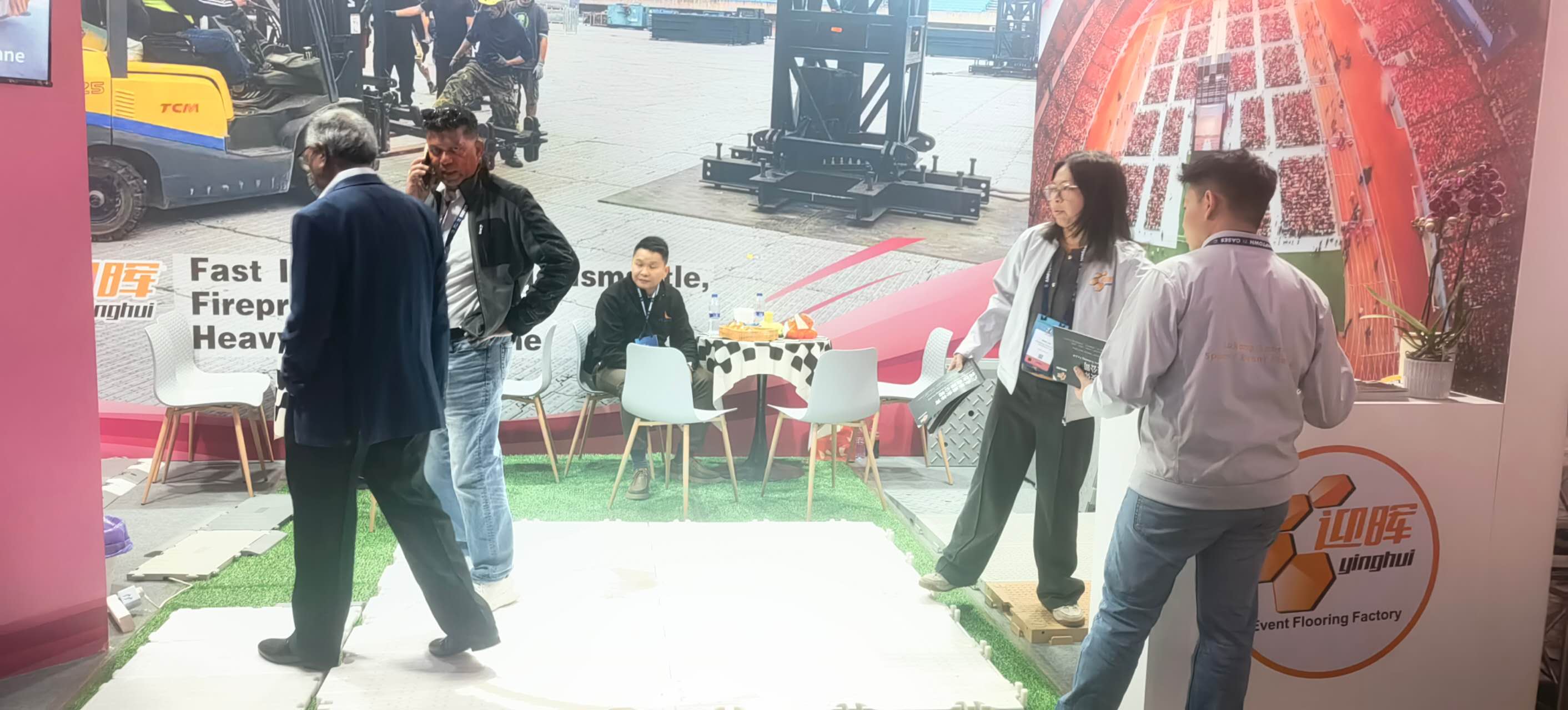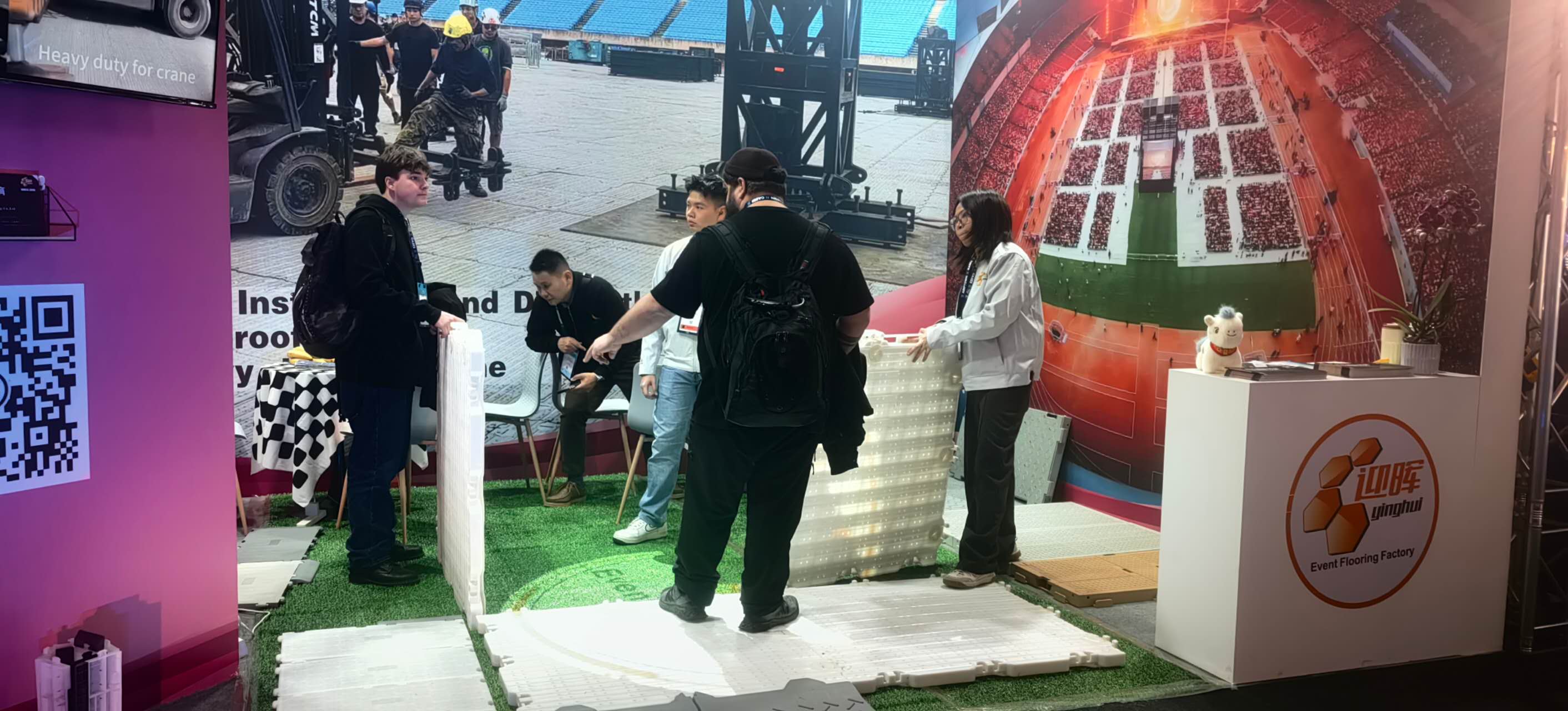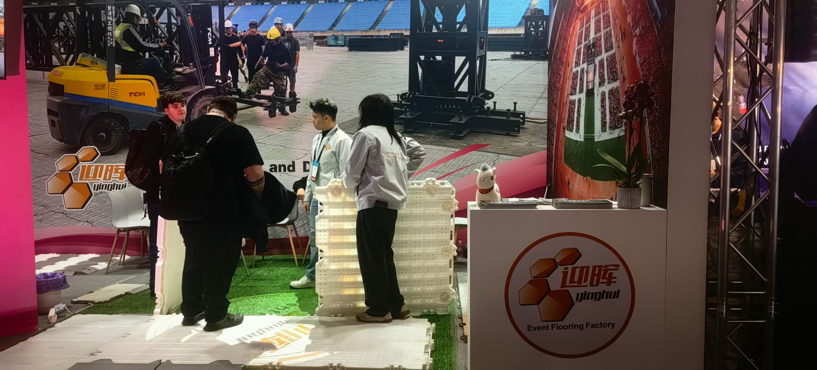 During the exhibition, we presented our full range of modular event flooring systems, including rollable turf protection flooring, medium-duty interlocking panels, and heavy-duty ground protection systems designed for large-scale concerts and stadium events. Our products attracted attention from event organizers, rental companies, and venue contractors seeking reliable, reusable, and high-performance flooring solutions.